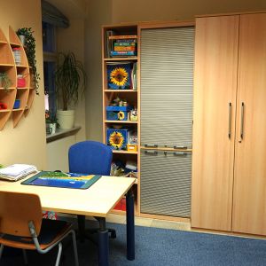 Meine Trabelsdorfer Praxis verfügt über fünf Behandlungszimmer auf zwei Etagen, ein im Obergeschoss eingerichteter Bewegungsraum bietet die Möglichkeit zur klinischen Lerntherapie.